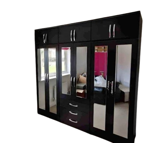 Introducing our stunning 6-door wardrobe with drawers and mirror, crafted from strong chipboard wood for lasting durability. This multicolor wardrobe not only adds a vibrant touch to your bedroom but also offers ample storage space for all your essentials. Equipped with smooth metal runners, the drawers glide effortlessly, ensuring long-term usability. The integrated mirror enhances the wardrobe’s functionality, making it a perfect addition to your daily routine. Ideal for organizing clothes, accessories, and more, this wardrobe combines style and practicality. Upgrade your bedroom with this versatile and chic piece of furniture. Perfect for those seeking both elegance and utility.